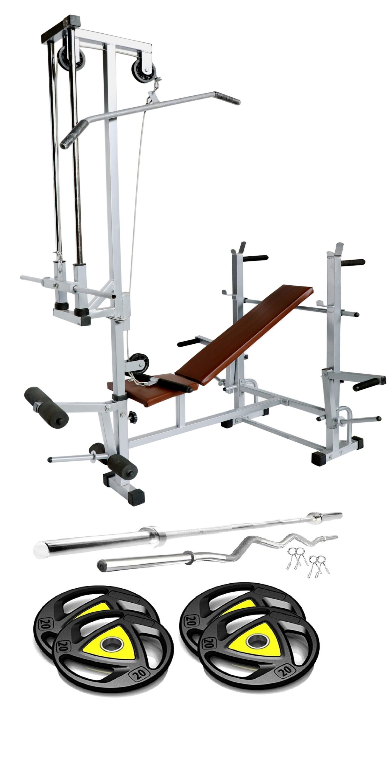 - GYMCREW 20 in 1 Single support bench silver with 40 kg imported weight & 5 Ft Plain Rod (25 mm) & 3 Ft Curl Rod (20 mm)